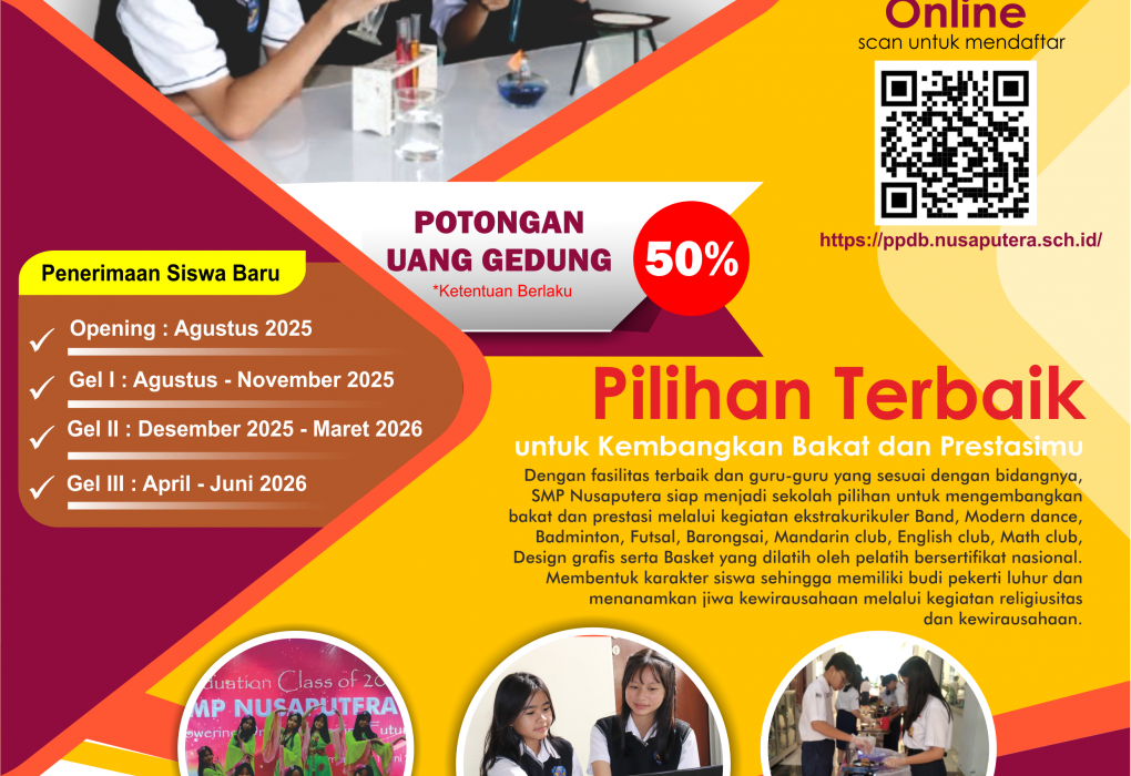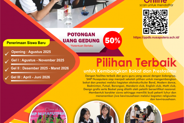 SMP Nusaputera Buka Pendaftaran Siswa Baru Tahun Ajaran 2026/2027, Diskon Uang Gedung 50% Tanpa Syarat!