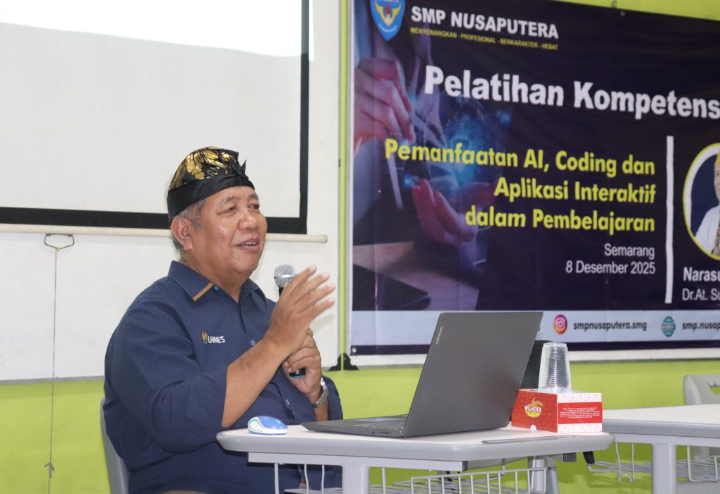 Semarang, 8 Desember 2025 – SMP Nusaputera mengadakan kegiatan Pelatihan Peningkatan Kompetensi Guru sebagai upaya memperkuat kemampuan pendidik dalam menghadapi perkembangan teknologi dan tuntutan pembelajaran modern. Kegiatan ini menghadirkan narasumber Dr. At. Sugeng Priyanto, M.Si., dosen Fakultas Ilmu Sosial dan Ilmu Politik (FISIP) Universitas Negeri Semarang (UNNES). Pelatihan yang digelar di ruang pertemuan SMP Nusaputera…